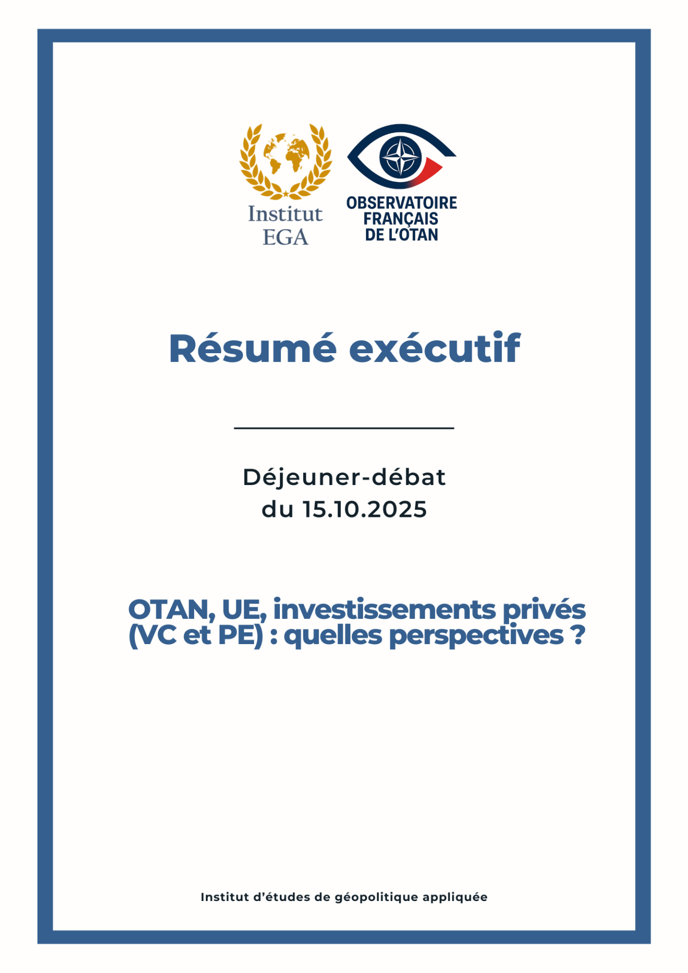 L'Institut d'études de géopolitique appliquée (Iega) a organisé, le mercredi 15 octobre 2025, un débat réunissant des experts et décideurs autour de trois intervenants : Claire Nestier, générale de division, co-fondatrice d'ECD CONSEIL, Antoine Kimmel, partner chargé du Private Equity chez Archery Strategy Consulting et Matthieu Chartier, directeur...