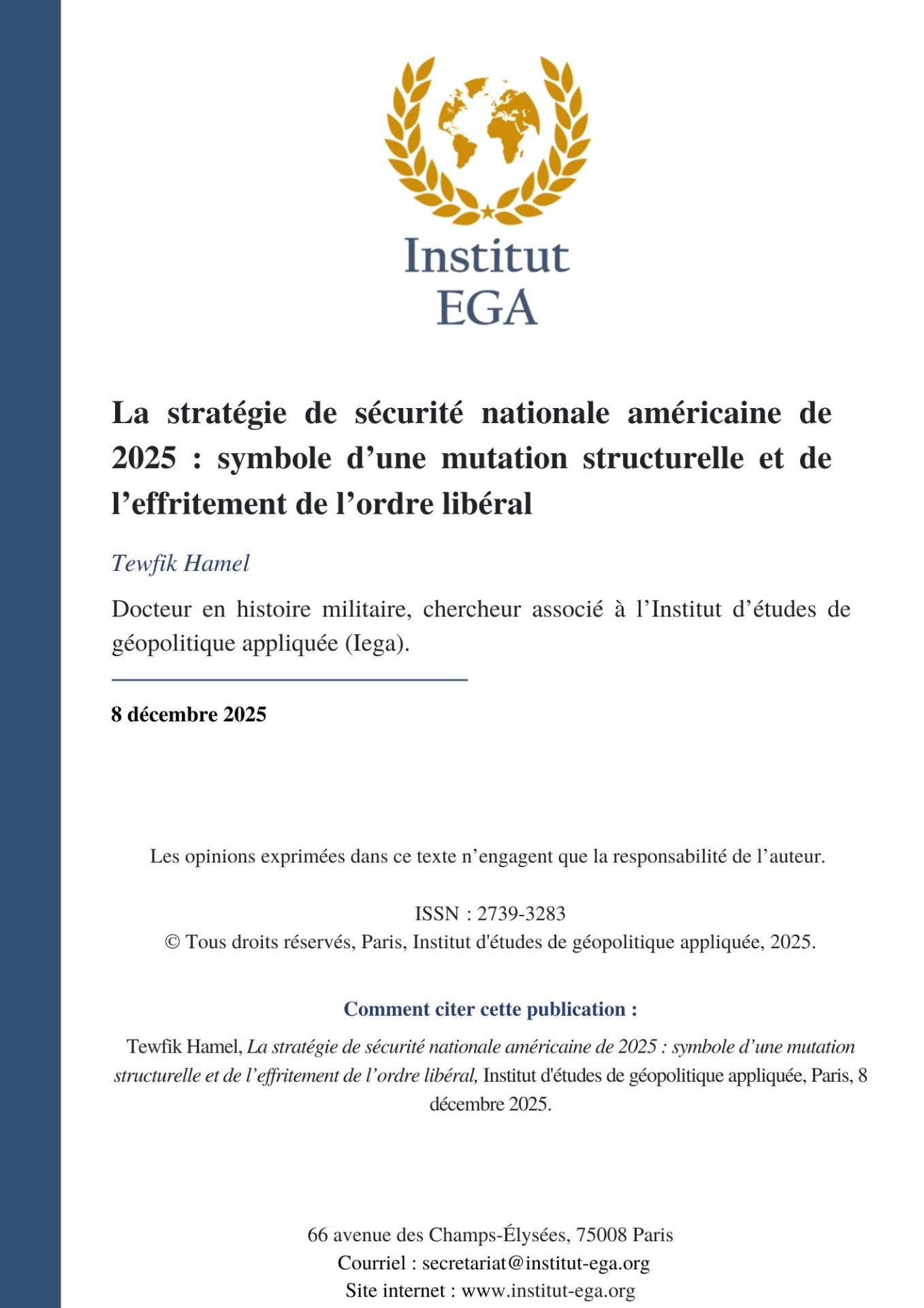 Par Tewfik Hamel, docteur en histoire militaire, chercheur associé à l'Institut d'études de géopolitique appliquée (Iega).