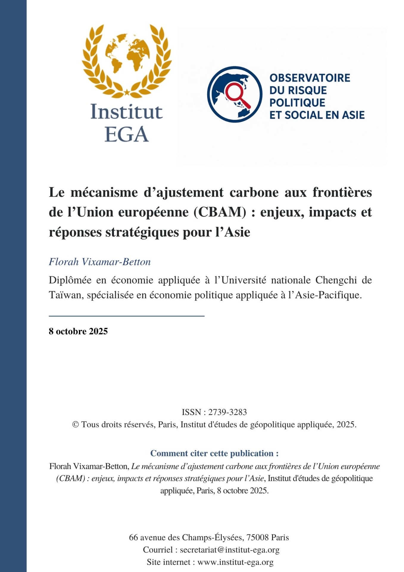 Le mécanisme d’ajustement carbone aux frontières de l’Union européenne (CBAM) : enjeux, impacts et réponses stratégiques pour l’Asie