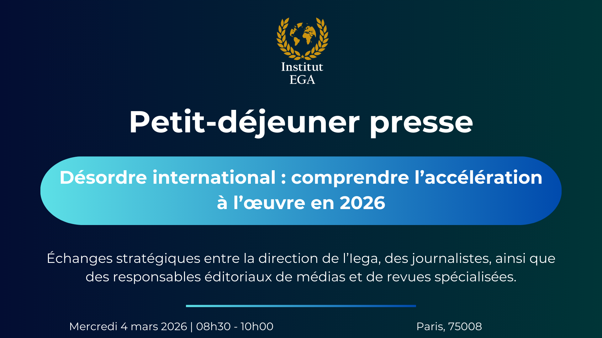 L'Institut d'études de géopolitique appliquée s'attache à produire et à diffuser des travaux de référence destinés à éclairer les grands enjeux internationaux et à nourrir le débat public.